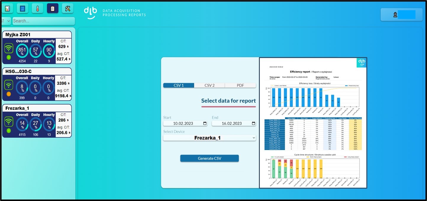 Automatyczne wysyłanie raportów z realizacją OEE i ilością wyprodukowanych cześci produkcyjnych